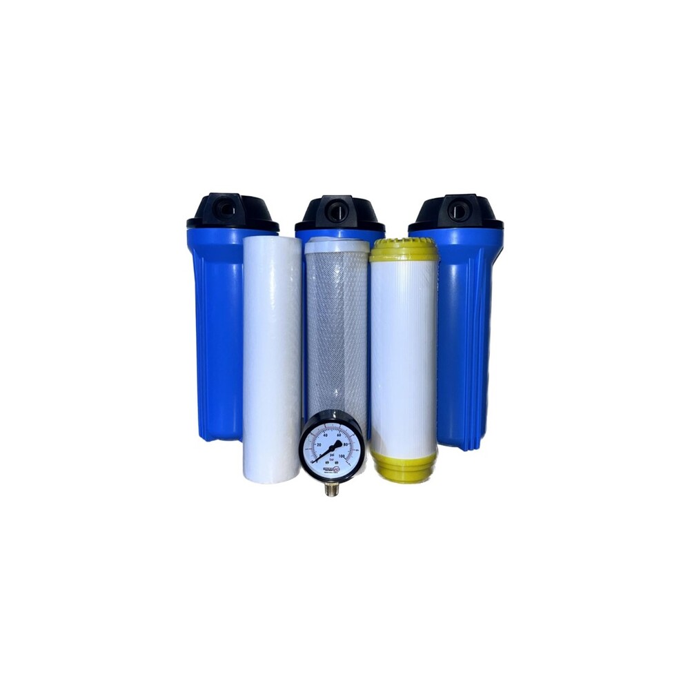 Kit Triple (Filtro de Carbón + Filtro de Sedimentos + Ablandador + Portafiltros + Manómetro + Accesorios)